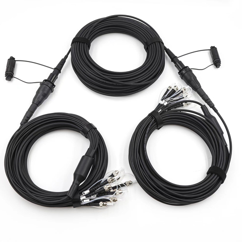 Precio de fábrica 16 núcleos OPT/MPO macho enchufe exterior IP67 impermeable FTTH Cable de conexión óptico prefabricado