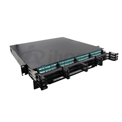 MPB Fixted Type 1U 19 pulgadas Montado en rack 192 núcleos MPO Panel de conexión de alta densidad disponible para 4 casetes de módulo MPO